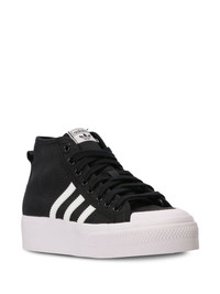 Nizza platform mid-top sneakers black/white canvas round toe platform sole front lace-up fastening logo patch at the tongue signature three-stripes ankle-length pull-tab at the heel branded insole Imported Composition Outer: Canvas 100% Lining: Fabric 100% Sole: Foam Rubber 100% Washing instructions Read Manufacturer Guidelines