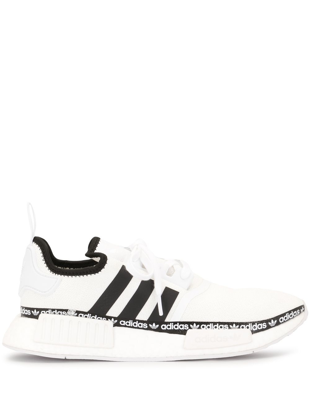 NMD_R1 knitted sneakers Highlights - White - Signature three-stripe logo - Logo trim - Round toe - Front lace-up fastening - Pull-tab at the heel - Flat rubber sole Imported Composition Outer: Fabric 100% Lining: Polyester 100% Sole: Rubber 100%