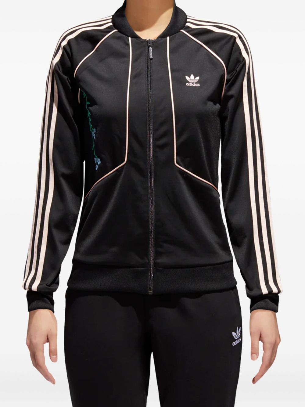 Originals floral-embroidered track top Highlights - Black - Three stripes logo - Embroidered floral motif - Front zip fastening - Ribbed cuffs - Contrast trim Imported Composition Fabric 100% Washing instructions Read Manufacturer Guidelines