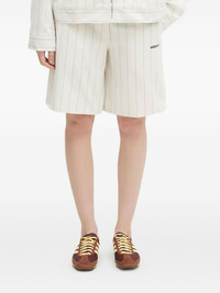 pinstripe shorts Highlights - White - Pinstripe pattern - High waist - Concealed front fastening - Embroidered logo - Straight hem Imported Composition Fabric 100% Washing instructions Read Manufacturer Guidelines