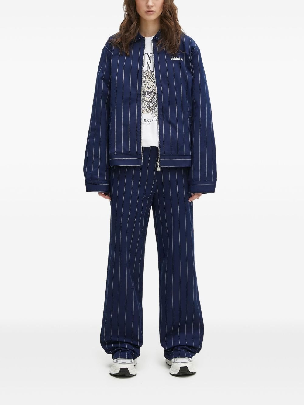 pinstripe zip-up jacket Highlights - Navy blue - Pinstripe pattern - Zip fastening - Collared neckline - Welt pockets Imported Composition Recycled Polyester 100%, Cotton 100% Washing instructions Read Manufacturer Guidelines