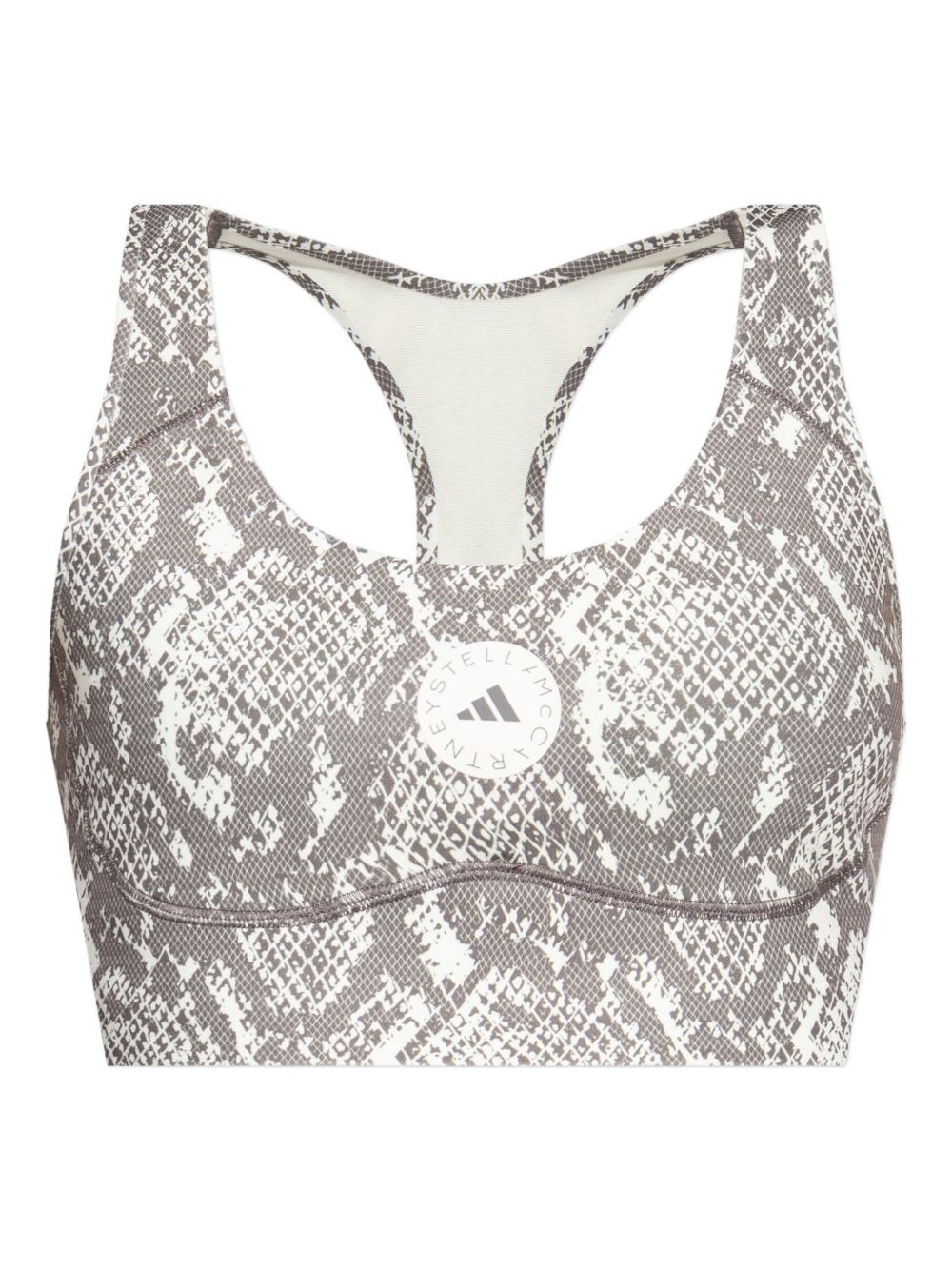 racer-back snake-print sports bra Highlights - Light grey and off-white - Snake print - Racer back - Logo detail - Scoop neck - Elasticated hem Imported Composition Recycled Polyester 100% Washing instructions Read Manufacturer Guidelines