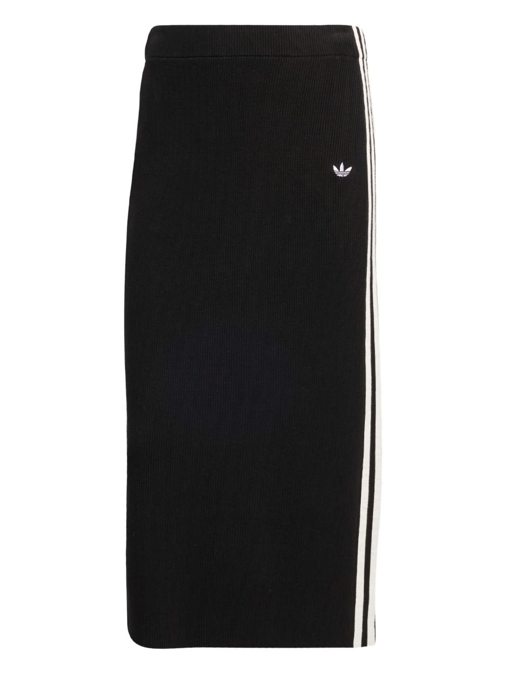 ribbed striped midi straight skirt Highlights - Black - Ribbed knit - Side stripe detail - Small logo - Midi length - Straight hem Imported Composition Viscose 72%, Polyester 28% Washing instructions Read Manufacturer Guidelines