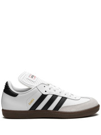Samba Classic "White/Black" sneakers Highlights - White/black - Leather - Suede panelling - Signature 3-stripes logo - Oversize tongue - Logo patch at the tongue - Contrasting heel counter - Front lace-up fastening - Round toe - Flat rubber sole - Some older production runs of the white samba classic feature a dark brown/black rubber outsole. newer pairs may feature a lighter-brown outsole when compared to this older style pictured. - These styles are supplied by a premium sneaker marketplace. stocking only the most sought-after footwear, they source and curate some of the most hard to find sneakers from around the world. Imported Composition Calf Leather 100% SIZE & FIT FittingInformation This piece fits true to size. We recommend you get your regular size