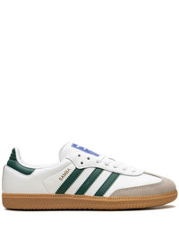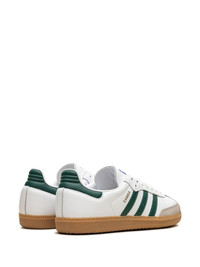 Samba "Collegiate Green" sneakers First released in 1950, adidas' Samba sneakers were designed d to provide footballers with grip and stability. This iteration is presented in Collegiate Green leather with cream white signature serrated 3-Stripes to the sides, while sat atop the traditional gum rubber outsole. Highlights - White - Leather - Suede panelling - Signature 3-stripes logo - Logo stamp at side - Contrasting heel counter - Round toe - Front lace-up fastening - Logo-print tongue - Branded insole - Gum-rubber sole - These styles are supplied by a premium and authenticated sneaker marketplace. stocking only the most sought-after footwear, they source and curate some of the most hard to find sneakers from around the world. Imported Composition Sole: Rubber 100% Outer: Suede 100%, Leather 100% Lining: Fabric 100% SIZE & FIT Measurement HEEL 0.98 in(2.5 cm) Sole height 0.59 in(1.5 cm)