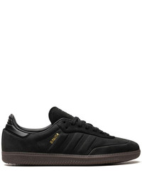 Samba "Core Black/Gum" sneakers Adidas' Samba sneakers are firmly rooted in sporting heritage. They made their world stage debut during the 1950 FIFA World Cup hosted by Brazil, hence why they are named after the Brazilian music genre. This iteration retains the familiar leather upper, 3-Stripes logo and gum rubber outsole, its sleek aesthetic and practical features transcending the soccer pitch to become a functional everyday staple. They boast a textile lining and reinforced toe for added comfort. Highlights - Black - Leather - Signature 3-stripes logo - Logo-embossed tongue - Round toe - Front lace-up fastening - Branded insole - Rubber outsole - These styles are supplied by a premium sneaker marketplace. stocking only the most sought-after footwear, they source and curate some of the most hard to find sneakers from around the world. Made in Italy Composition Leather 100%