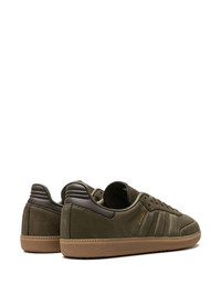 Samba leather sneakers Highlights - Olive green - Leather/nubuck leather - Signature 3-stripes logo - Logo-print tongue - Stamped detail - Embossed detail - Round toe - Front lace-up fastening - Branded leather insole - Flat rubber sole Imported Composition Suede 100% SIZE & FIT Measurement HEEL 0.98 in(2.5 cm) Sole height 0.59 in(1.5 cm)