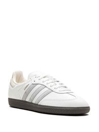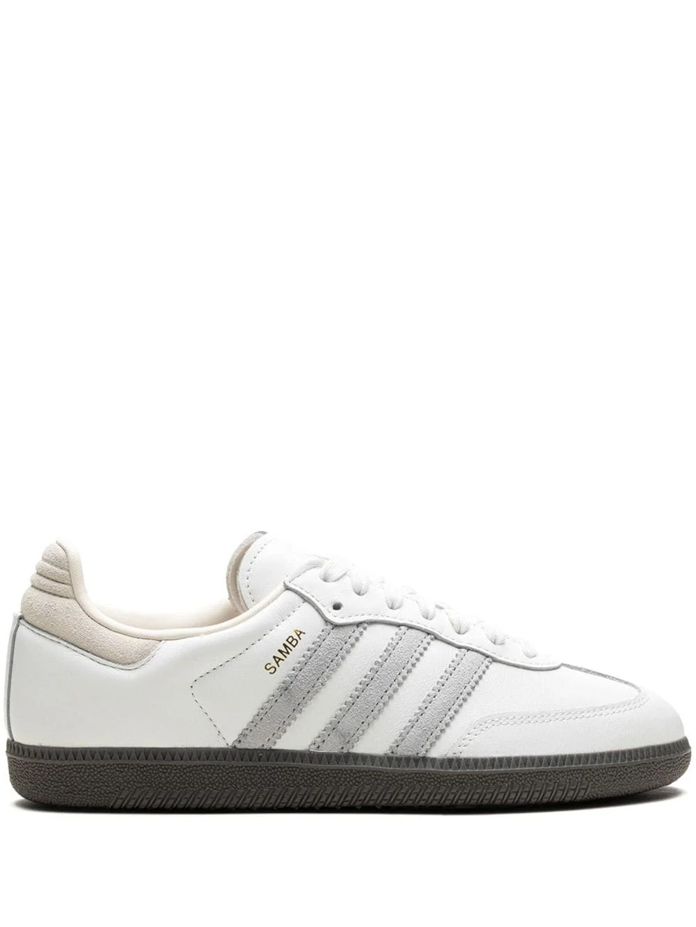 Samba OG "Cream White" sneakers Highlights - White - Calf leather - Smooth grain - Front lace-up fastening - Suede trim - Contrasting heel counter - Signature 3-stripes logo - Logo stamp at side - Signature trefoil logo detail - Round toe - Branded insole - Gum-rubber sole - These styles are supplied by a premium and authenticated sneaker marketplace. stocking only the most sought-after footwear, they source and curate some of the most hard to find sneakers from around the world. Made in Italy Composition Outer: Calf Leather 100% Lining: Calf Leather 100% Sole: Rubber 100%