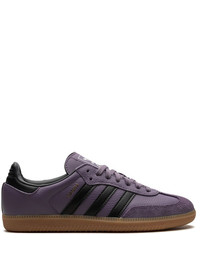 Samba OG leather sneakers Each season gives adidas the opportunity to present high-quality sneakers while looking through a technical lens. A fine example are these Samba OG sneakers, taking a traditional low-top profile and giving it the retro-inspired appeal thanks to the classic black and purple colourway. Highlights - Purple - Calf leather - Signature 3-stripes logo - Logo patch at the tongue - Front lace-up fastening - Round toe - Branded insole - Flat rubber sole - These styles are supplied by a premium sneaker marketplace. stocking only the most sought-after footwear, they source and curate some of the most hard to find sneakers from around the world. Imported Composition Leather 100% SIZE & FIT Measurement HEEL 0.78 in(2 cm) Sole height 0.59 in(1.5 cm)