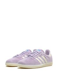 Samba OG "Silver Dawn/Chalk White/Off White" sneakers Highlights - Lilac purple - Suede - Logo stamp at side - Signature 3-stripes logo - Contrasting heel counter - Round toe - Front lace-up fastening - Logo-print tongue - Branded insole - Gum-rubber sole - These styles are supplied by a premium and authenticated sneaker marketplace. stocking only the most sought-after footwear, they source and curate some of the most hard to find sneakers from around the world. Imported Composition Sole: Rubber 100% Outer: Suede 100% Lining: Fabric 100%