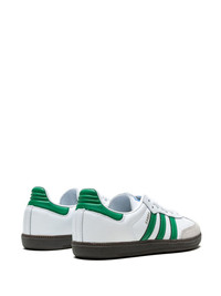 Samba OG sneakers First released in 1950, adidas' Samba sneakers were designed d to provide footballers with grip and stability. This iteration is presented in white leather with green signature serrated 3-Stripes to the sides, while sat atop the traditional gum rubber outsole. Highlights - White/green - Calf leather - Signature 3-stripes logo - Logo print to the side - Round toe - Front lace-up fastening - Logo patch at the tongue - Contrasting heel counter - Flat rubber sole - These styles are supplied by a premium sneaker marketplace. stocking only the most sought-after footwear, they source and curate some of the most hard to find sneakers from around the world. Imported Composition Leather 100% SIZE & FIT FittingInformation This piece fits large – take one size down Measurement HEEL 0.78 in(2 cm) Sole height 0.59 in(1.5 cm)