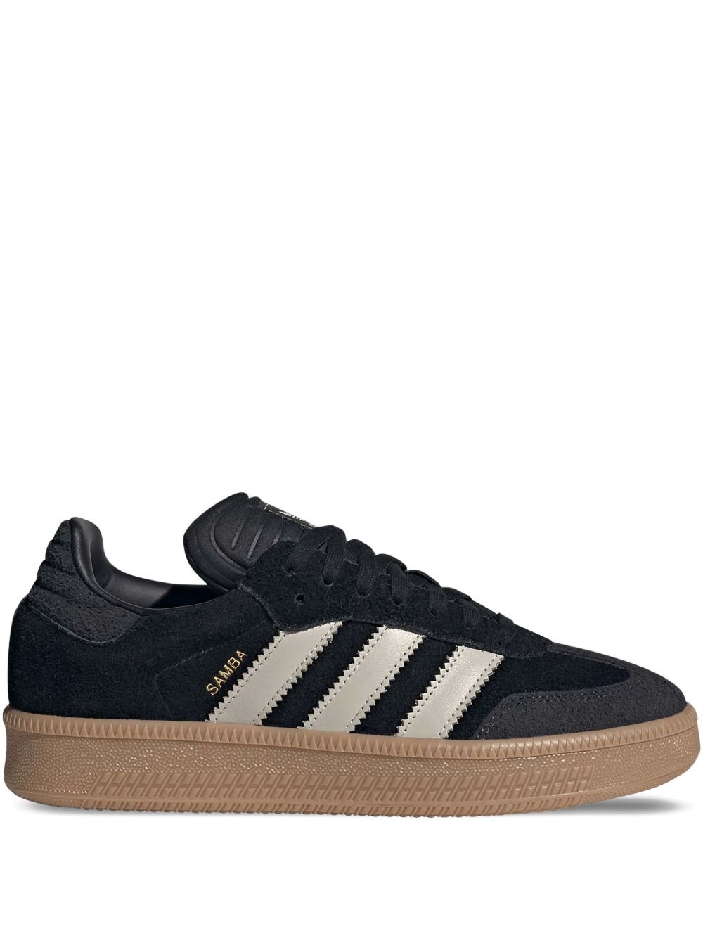 Samba three-stripe trainers Highlights - Black - Suede upper - Three stripes - Gum sole - Low-top design - Lace-up closure Imported Composition Lining: Calf Leather 100% Sole: Rubber 100% Outer: Suede 100%, Fabric 100%
