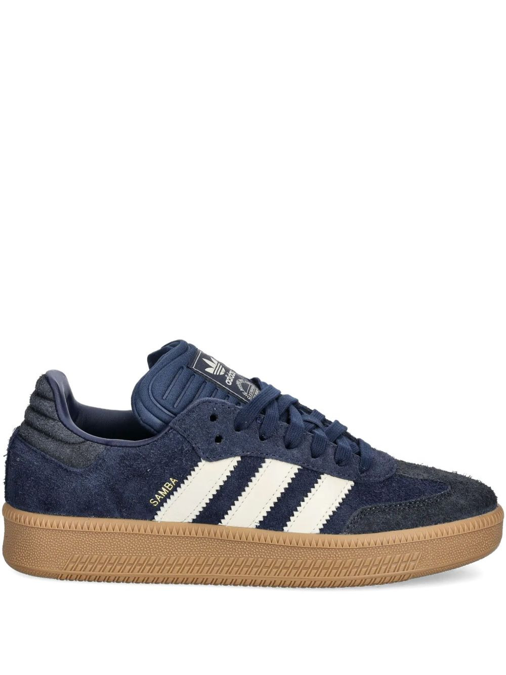 Samba XLG three-stripe suede sneakers Highlights - Navy blue - Suede - Three stripes - Rubber sole - Padded collar - Low-top design Imported Composition Lining: Fabric 100% Sole: Rubber 100% Outer: Calf Suede 100%