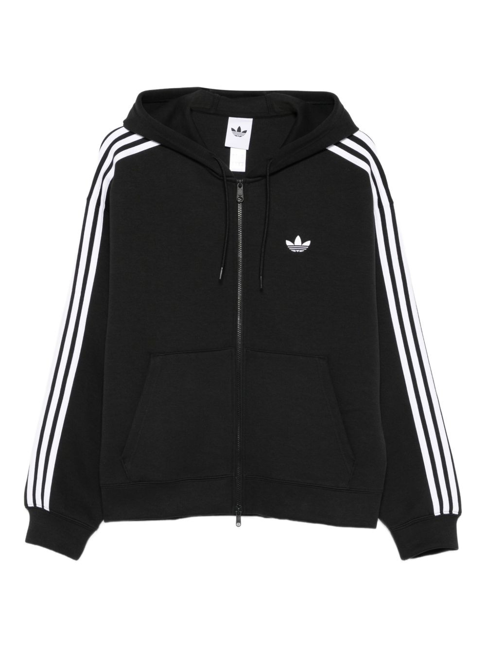 Sapcer zip-up hooded jacket Highlights - Black - Classic hood - Zip fastening - 3 stripe detail - Long sleeves - Kangaroo pocket Imported Composition Cotton 53%, Polyester 47% SIZE & FIT Model measurements Height 6 ft 2 in(1.88 m) Bust/Chest 37.4 in(95 cm) Hips 38.58 in(98 cm) Waist 31.1 in(79 cm) Washing instructions Machine Wash
