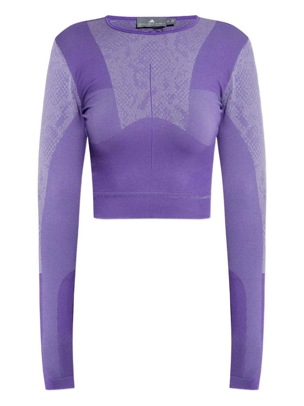 snakeskin-pattern long-sleeve top Highlights - Purple - Snakeskin pattern - Long sleeves - Round neck - Open back Imported Composition Polyamide 73%, Spandex/Elastane 27% Washing instructions Read Manufacturer Guidelines