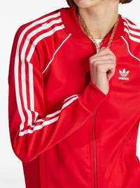 SST Adicolor Classics "Better Scarlet" jacket Highlights - Scarlet red - Front zip fastening - Ribbed band collar - Signature trefoil logo detail - Signature 3-stripes logo - Two side zip-fastening pockets - Long sleeves - Ribbed cuffs and hem Imported Composition Cotton 50%, Recycled Polyester 43%, Elastane 7%