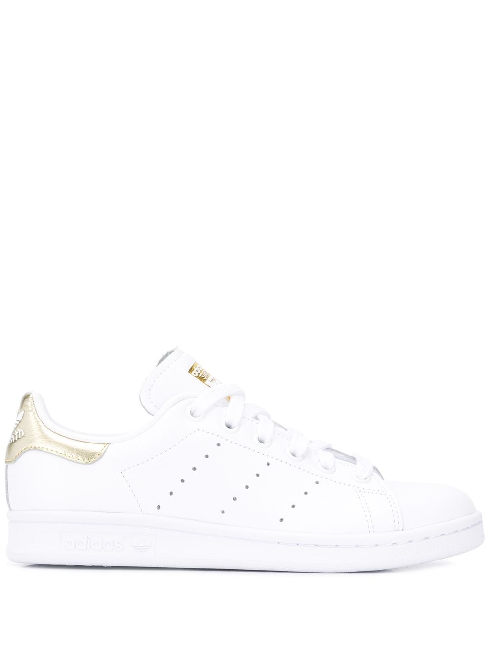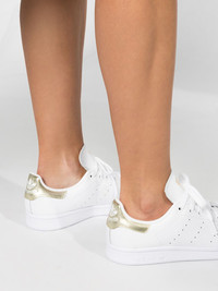 Stan Smith sneakers Sports are deeply rooted within the brand ideology at adidas and continue to play a major role in the design and construction of the label’s contemporary products. Considered a pioneering force in today’s sports-luxe market; adidas continues to bridge the gap between the street and the court, as showcased by these white and gold-tone leather Stan Smith sneakers. Featuring a round toe, a lace-up front fastening, a branded heel counter and a flat rubber sole. POSITIVELY CONSCIOUS: Adidas Group scores 4 out 5 by independent ethical brand rating agency Good On You. It uses eco-friendly materials in many products - 100% of its cotton is from sustainable sources and it's committed to use 100% recycled polyester by 2024. It traces and audits almost all of its supply chain to ensure good labour standards, and has committed to reduce carbon and water stress across its whole supplier base. Imported Composition Calf Leather 100%