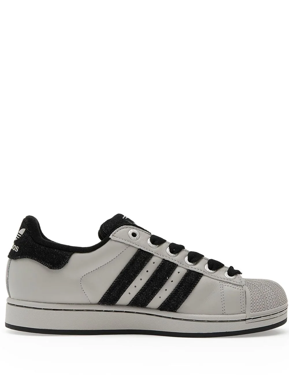 Superstar II three-stripes low-top sneakers Highlights - Grey - Three stripes detailing - Black laces - Rubber sole Imported Composition Sole: Rubber 100% Lining: Fabric 100% Outer: Leather 100%