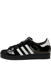 Superstar shell-toe 3-stripes logo sneakers Highlights - Black - Patent leather - Rubber shell toe - 3-stripes logo - Low-top - Lace-up closure Imported Composition Outer: Calf Leather 100% Lining: Fabric 100% Sole: Rubber 100%