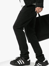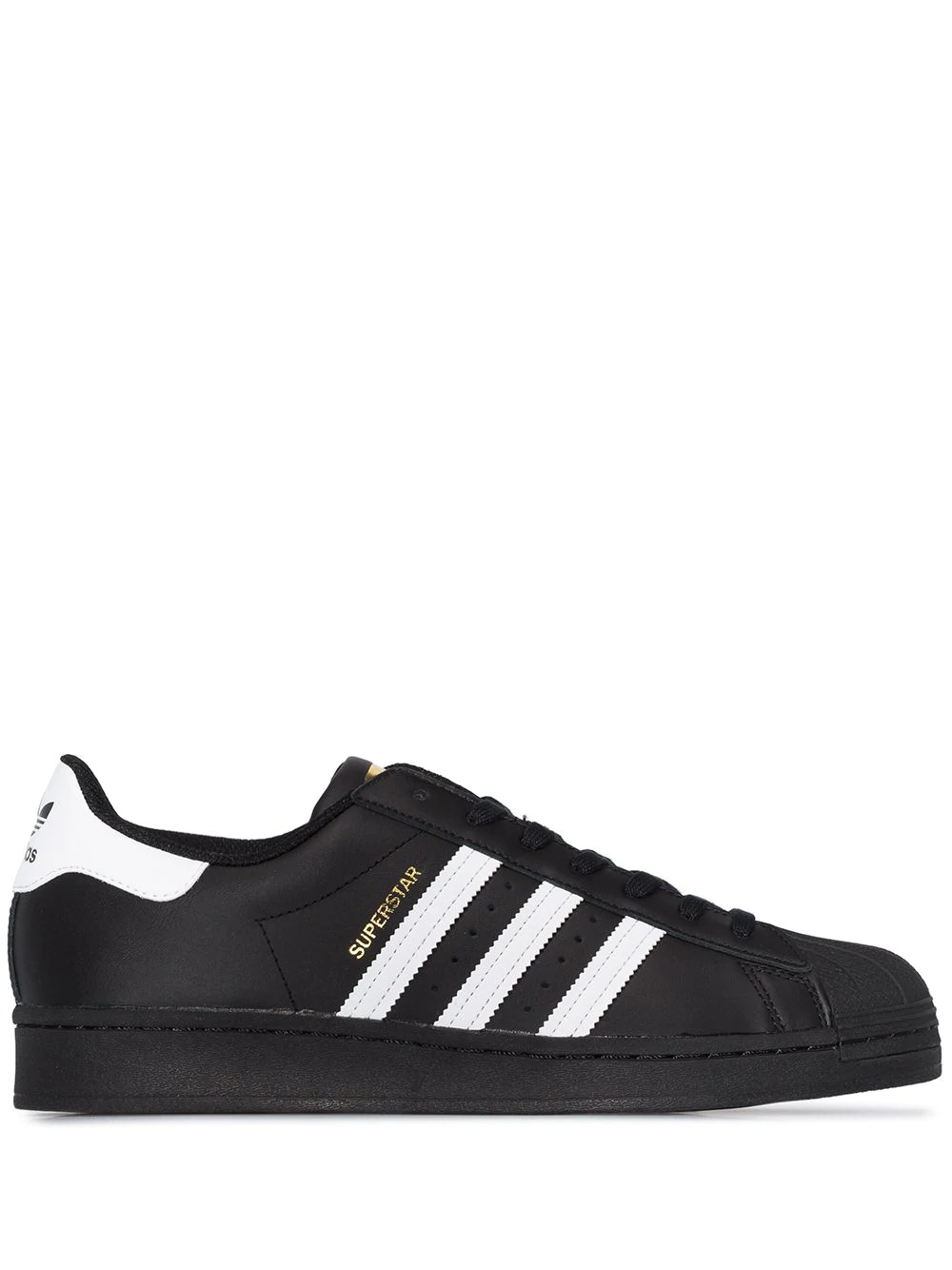 Superstar "Black/White" low-top sneakers Highlights - These black adidas superstar leather sneakers feature a round shell top toe, a front lace fastening, a metallic logo at the tongue, signature 3-stripe applique at the sides and a logo at the heel counter. they have a flat rubber sole. it’s not a coincidence that these adidas - Superstar - trainers caught your eye. they definitely suit you. Imported Composition Calf Leather 100% SIZE & FIT Model measurements Height 6 ft 1 in(1.86 m) Bust/Chest 37.4 in(95 cm) Hips 36.22 in(92 cm) Waist 29.52 in(75 cm) Measurement HEEL 1.06 in(2.7 cm)