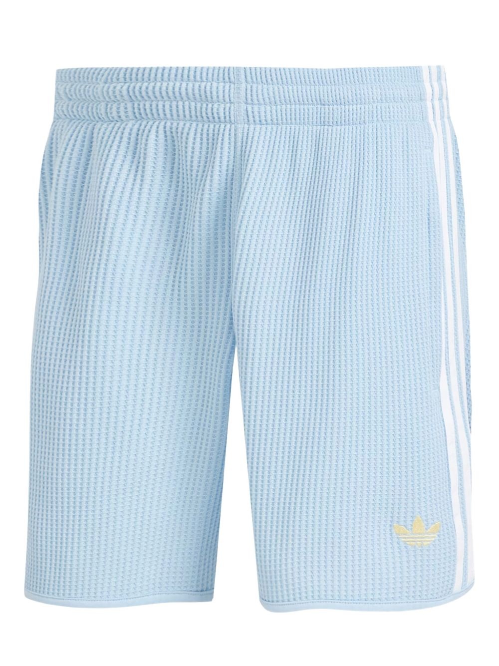 textured shorts Highlights - Light blue - Waffle texture - Logo embroidery - Side pockets - Contrasting stripes Imported Composition Recycled Polyester 65%, Cotton 35% Washing instructions Machine Wash