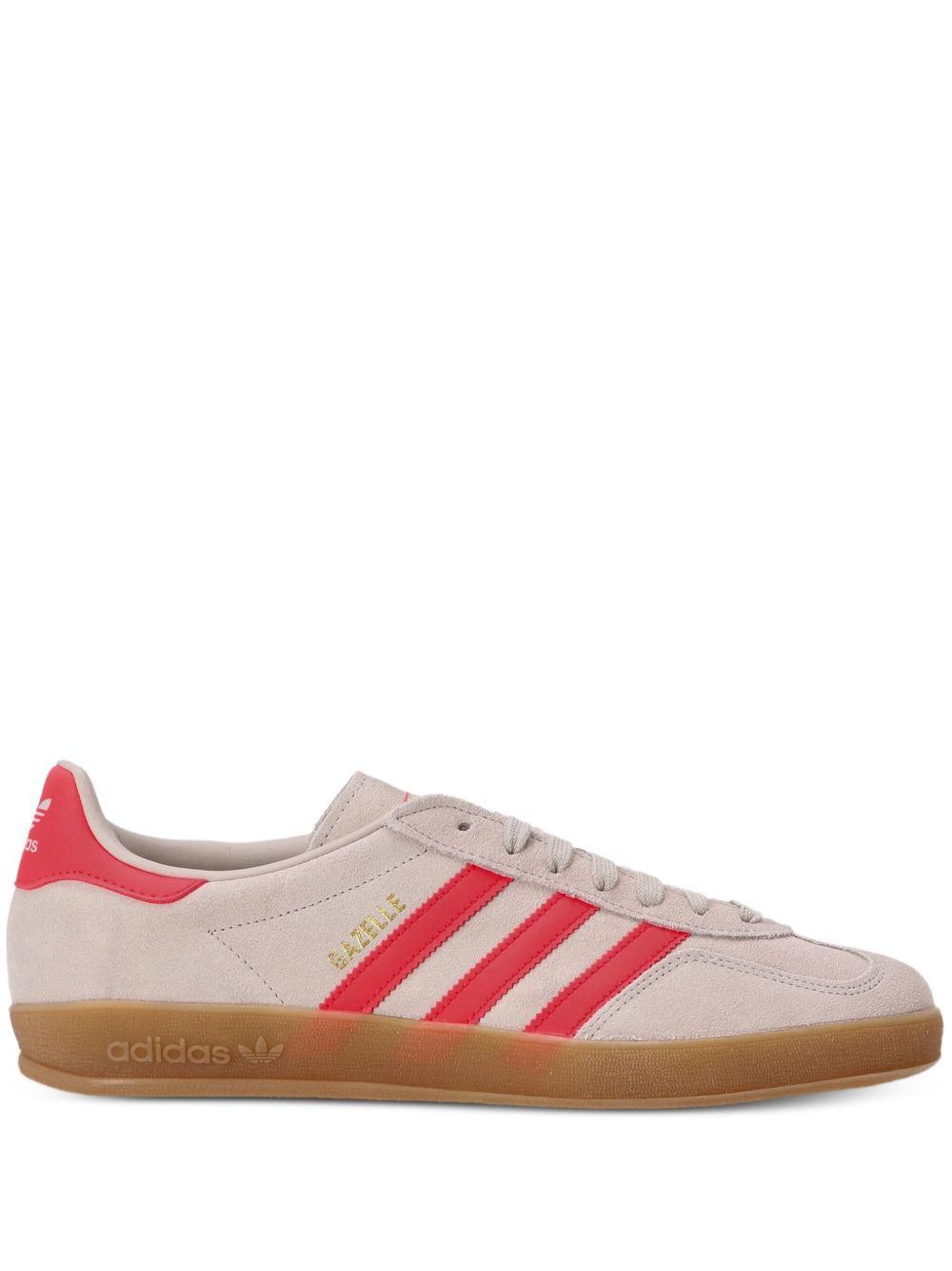 three-stripe leather low-top sneakers Highlights - Beige - Leather - Three red stripes - Low-top design - Lace-up closure Imported Composition Lining: Fabric 100% Sole: Rubber 100% Outer: Leather 100%, Fabric 100% Washing instructions Read Manufacturer Guidelines