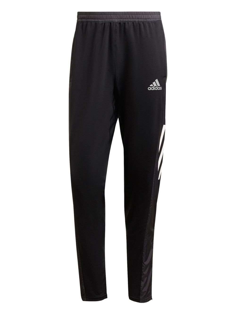 three-stripe panelled trousers Highlights - Black - Three stripes panel - Elasticated waistband - Zip fastening at ankle - Side pockets Imported Composition Recycled Polyester 91%, Elastane 9%
