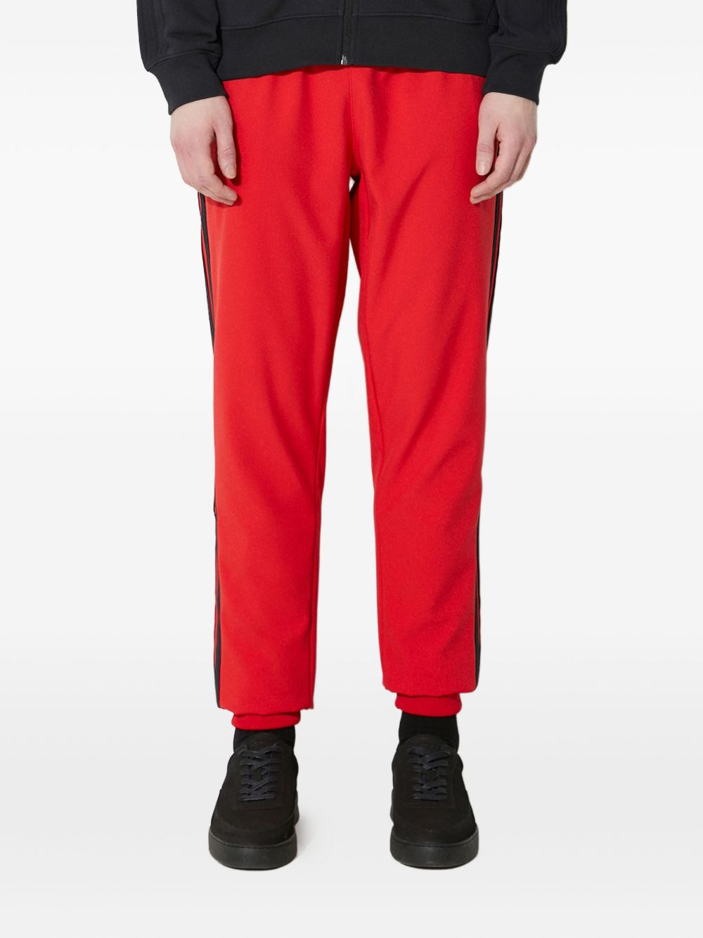 three-stripe track pants Highlights - Red - Three black stripes - Cuffed hems - Zip-fly fastening - Side pockets - Trefoil logo Imported Composition Recycled Polyester 100% Washing instructions Machine Wash