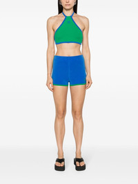 trefoil-logo terry-cloth shorts Highlights - Blue/green - Cotton blend - Terry-cloth effect - Contrasting trim - Signature trefoil logo detail - Elasticated waistband - Straight hem - Thigh-length Imported Composition Cotton 80%, Recycled Polyester 20% SIZE & FIT Model measurements Height 5 ft 11 in(1.8 m) Bust/Chest 33.07 in(84 cm) Hips 37.4 in(95 cm) Waist 25.19 in(64 cm) FittingInformation Designed for a close fit throughout Slightly short in length; consider your own measurements Made from a midweight non-stretch fabric, this piece offers minimal elasticity when worn This piece fits true to size – take your usual size