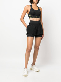 TruePace running sports bra Highlights - Black - Yellow - Recycled polyester blend - Stretch-design - Logo print to the front - Logo print to the rear - Scoop neck - Cut-out detailing - Adjustable spaghetti straps - Rear criss-cross straps - Rear hook and eye fastening - Elasticated underband Imported Composition Recycled Polyester 79%, Elastane 21% SIZE & FIT Model measurements Height 5 ft 10 in(1.79 m) Bust/Chest 31.49 in(80 cm) Hips 35.03 in(89 cm) Waist 24.4 in(62 cm) Measurement LENGTH 4.52 in(11.5 cm) BUST 34.64 in(88 cm) Washing instructions Machine Wash