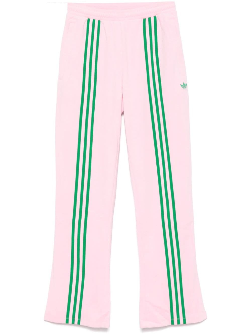 velour track pants Highlights - Light pink/grass green - Recycled polyester blend - Velour - Elasticated waistband with internal drawstring - Two side zip-fastening pockets - Signature 3-stripes logo - Signature trefoil logo detail - Raised seam detail to the rear - Flared Imported Composition Recycled Polyester 92%, Spandex/Elastane 8% SIZE & FIT Model measurements Height 5 ft 9 in(1.76 m) Bust/Chest 34.25 in(87 cm) Hips 35.82 in(91 cm) Waist 23.62 in(60 cm) FittingInformation Designed with a flared hem, these trousers allow for a close fit at the waist with a slim fit over the leg and widening towards the hem Adjust this piece’s waistband to your preference using the drawstring Made from a midweight stretch fabric, this piece offers elasticity and flexibility when worn