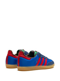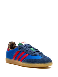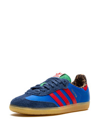 x Sneaker Politics Samba "Consortium Cup" sneakers The Sneaker Politics x adidas Samba “Consortium Cup” was born from a collaboration between the New Orleans-based retailer and the iconic sneaker brand. This version boasts a blue nylon construction, complemented by hairy blue suede on the toe and eyelets, that is highlighted by red leather 3-Stripes branding on both sides for a striking effect. The gold 'Politics' detailing, green tongue and leopard print inner lining add a flair. Highlights - Royal blue - Red - Suede - Signature 3-stripes logo - Contrasting heel counter - Round toe - Front lace-up fastening - Logo patch at the tongue - Branded insole - Contrast lining - Gum-rubber sole - Release date: november 15, 2023 - These styles are supplied by a premium and authenticated sneaker marketplace. stocking only the most sought-after footwear, they source and curate some of the most hard to find sneakers from around the world. Imported Composition Suede 100%