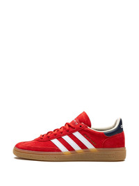 x Sporty & Rich Handball Spezial "USA" sneakers Highlights - Red - Leather/suede - Logo stamp at side - Signature 3-stripes logo - Contrasting heel counter - Round toe - Front lace-up fastening - Logo patch at the tongue - Branded insole - Gum-rubber sole - These styles are supplied by a premium and authenticated sneaker marketplace. stocking only the most sought-after footwear, they source and curate some of the most hard to find sneakers from around the world. Imported Composition Sole: Rubber 100% Outer: Suede 100%, Leather 100% Lining: Fabric 100%