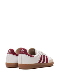 x Sporty & Rich Samba OG sneakers Adidas joins forces with Sporty and Rich to create the iconic Samba silhouette in a white and burgundy colourway. Crafted from leather with a suede toe overlay, it spotlights the iconic Three Stripes logo alongside gold-tone lettering on the sidewalls. Dual branding lands on the heel, whilst a gum rubber sole finishes the design. Highlights - White/burgundy/ecru - Leather/suede - Contrasting branded heel counter - Logo patch at the tongue - Gold-tone logo lettering - Signature 3-stripes logo - Round toe - Gum-rubber sole - These styles are supplied by a premium sneaker marketplace. stocking only the most sought-after footwear, they source and curate some of the most hard to find sneakers from around the world. Imported Composition Leather 100%