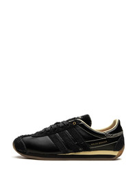 x Wales Bonner Country "Core Black/Easy Yellow" sneakers Resulting from the collaboration of adidas with British streetwear label Wales Bonner, this black and yellow iteration of the Country sneakers showcases classic football-inspired elements. They're crafted from supple leather and suede and lined with lustrous satin for a refined finish. Highlights - Black/pastel yellow/suede - Panelled design - Logo patch at the tongue - Signature 3-stripes logo - Front lace-up fastening - Round toe - Gold-tone logo lettering - Contrast stitching - Signature trefoil logo detail - Satin lining - Branded insole - Rubber outsole - These styles are supplied by a premium and authenticated sneaker marketplace. stocking only the most sought-after footwear, they source and curate some of the most hard to find sneakers from around the world. Imported Composition Sole: Rubber 100% Lining: Satin 100% Outer: Leather 100%, Nylon 100%, Suede 100%