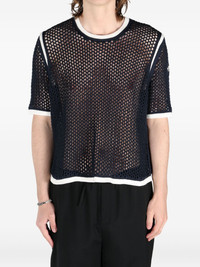 x Wales Bonner crochet T-shirt Highlights - Navy blue - Round neck - Short sleeves - Logo patch to the rear Imported Composition Cotton 60%, Recycled Polyester 40% Washing instructions Machine Wash