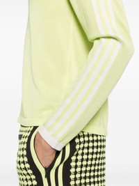x Wales Bonner fine-knit top Highlights - Light green - Round neck - Signature 3-stripes logo - Embroidered logo at the chest - When buying this unisex item, keep in mind that it is graded in standard men's sizing. Imported Composition Rayon 67%, Recycled Polyester 33% SIZE & FIT Model measurements Height 6 ft 2 in(1.87 m) Bust/Chest 36.41 in(92.5 cm) Hips 35.43 in(90 cm) Waist 29.52 in(75 cm) Measurement SLEEVE LENGTH 25.59 in(65 cm) LENGTH 22.83 in(58 cm) BUST 38.58 in(98 cm) Shoulder Width 16.14 in(41 cm) FittingInformation This unisex piece is designed for a relaxed fit whether you usually select women's or men's sizes Made with a midweight knit, this piece offers some stretch