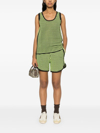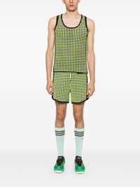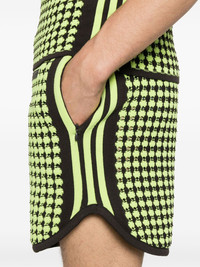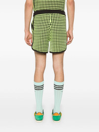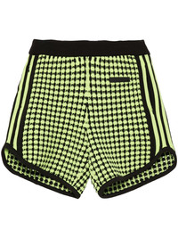 X Wales Bonner houndstoot crochet-knit shorts Highlights - Cedar brown/neon green - Recycled polyester - Knitted construction - Crochet knit - Houndstooth pattern - Elasticated waistband with internal drawstring - Applique logo - Signature 3-stripes logo - Two side zip-fastening pockets - Elasticated hem - Unlined - When buying this unisex item, keep in mind that it is graded in standard men's sizing. Imported Composition Recycled Polyester 100% SIZE & FIT Model measurements Height 6 ft 2 in(1.87 m) Bust/Chest 36.41 in(92.5 cm) Hips 35.43 in(90 cm) Waist 29.52 in(75 cm) FittingInformation This piece is unisex and is designed with a straight-cut over the leg whether you usually select women's or men's sizes Adjust this piece’s waistband to your preference using the drawstring Made with a midweight knit, this piece offers some stretch