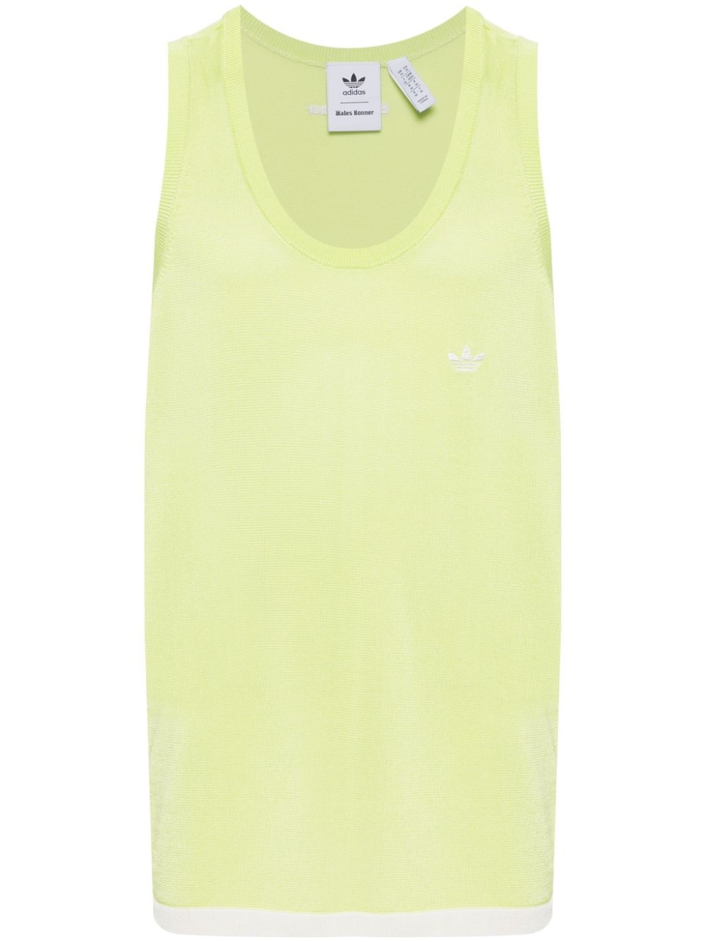 x Wales Bonner knit top Highlights - Fluorescent green - Round neck - Signature 3-stripes logo - Embroidered logo at the chest - When buying this unisex item, keep in mind that it is graded in standard men's sizing. Imported Composition Viscose 67%, Recycled Polyester 33% SIZE & FIT Model measurements Height 6 ft 1 in(1.86 m) Bust/Chest 37.4 in(95 cm) Hips 36.22 in(92 cm) Waist 29.52 in(75 cm) Measurement CHEST 50.39 in(128 cm) LENGTH 28.34 in(72 cm) FittingInformation This unisex piece is designed for a relaxed fit whether you usually select women's or men's sizes Made with a midweight knit, this piece offers some stretch