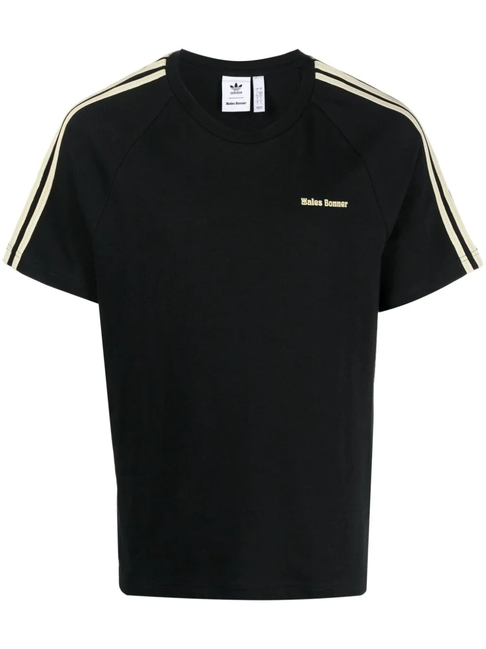 x Wales Bonner organic cotton T-shirt Highlights - Black/yellow - Organic cotton - Soft jersey - Flocked logo - Signature 3-stripes logo - Crew neck - Short sleeves - Straight hem - When buying this unisex item, keep in mind that it is graded in standard men's sizing. Imported Composition Organic Cotton 100% SIZE & FIT Model measurements Height 6 ft 1 in(1.86 m) Bust/Chest 37.4 in(95 cm) Hips 36.22 in(92 cm) Waist 29.52 in(75 cm) Measurement CHEST 43.3 in(110 cm) LENGTH 27.16 in(69 cm) FittingInformation Designed for a relaxed fit, this piece allows for comfort and movement when worn Made from a midweight non-stretch fabric, this piece offers minimal elasticity when worn This piece fits true to size – take your usual size Washing instructions Machine Wash