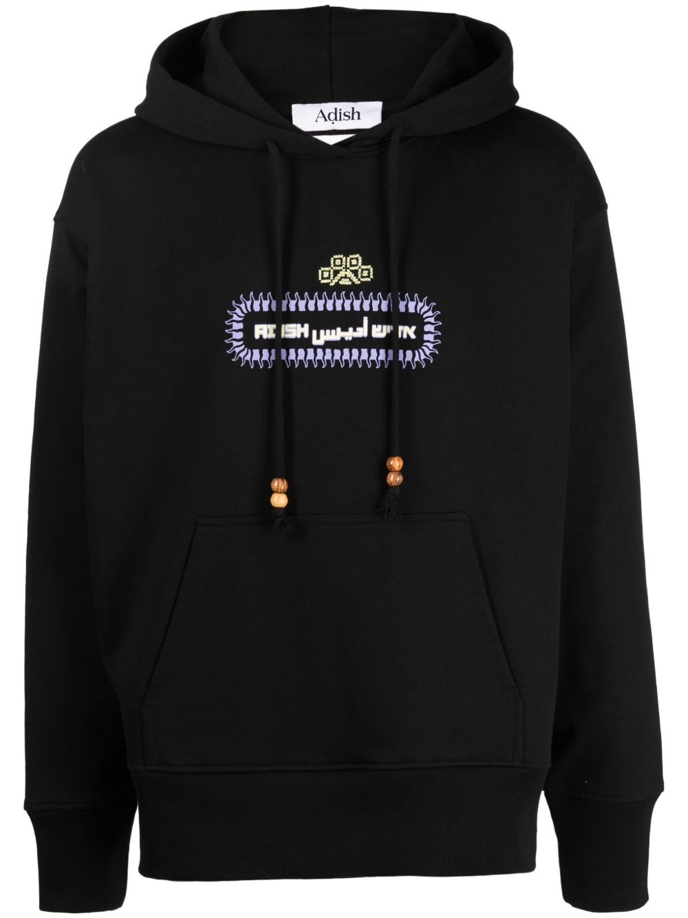 Alkhws logo-print cotton hoodie Highlights - Black/multicolour - Cotton - Jersey texture - Logo print to the front - Embroidered motif - Bead detailing - Graphic print to the rear - Drawstring hood - Drop shoulder - Long sleeves - Straight hem - Front pouch pocket Imported Composition Body: Cotton 100% SIZE & FIT Model measurements Height 6 ft 2 in(1.87 m) Bust/Chest 34.25 in(87 cm) Hips 36.22 in(92 cm) Waist 29.52 in(75 cm) FittingInformation Designed to be unstructured, offering a loose fit throughout Made from a midweight non-stretch fabric, this piece offers minimal elasticity when worn This piece fits true to size – take your usual size
