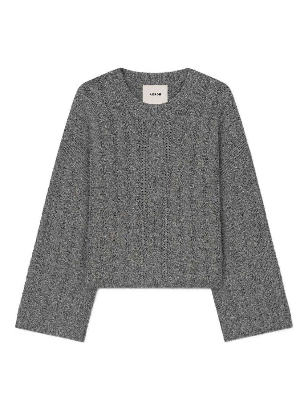 cable-knit sweater Highlights - Grey - Cable knit - Wide sleeves - Round neck - Wool Imported Composition Wool 100% Washing instructions Read Manufacturer Guidelines