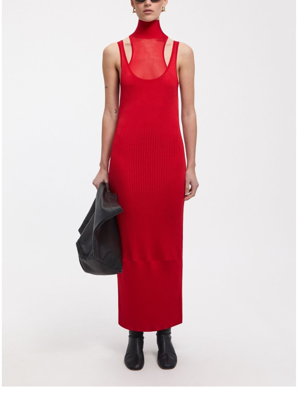 Cay dress Highlights - Red - Ribbed knit - High neck - Sleeveless - Cut-out detailing - Rear tie fastening Imported Composition Rayon 100% Washing instructions Read Manufacturer Guidelines