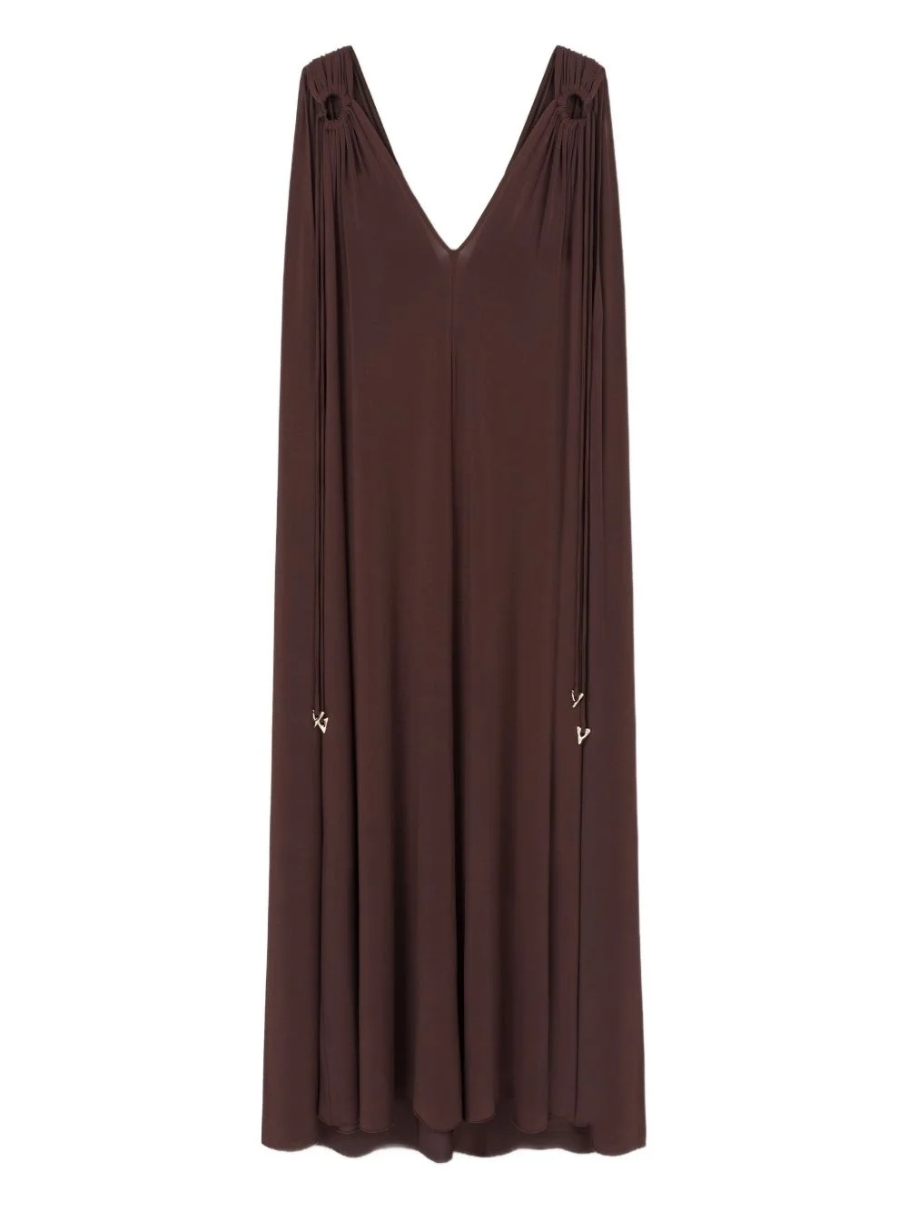 Doris dress Highlights - Brown - V-neck - Sleeveless - Draped bodice - Shoulder ring detail Imported Composition FSC Viscose 93%, Elastane 7% Washing instructions Read Manufacturer Guidelines