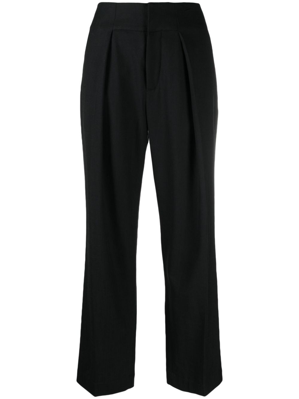 fine-knit tailored trousers Highlights - Black - Ecovero™ viscose blend - Fine knit - Pressed crease - Dart detailing - Concealed front button, hook and zip fastening - High-waisted - Tailored cut - Two side welt pockets - Rear welt pocket - Straight hem - Unlined Imported Composition EcoVero Viscose (LENZING) 83%, Polyester 17%