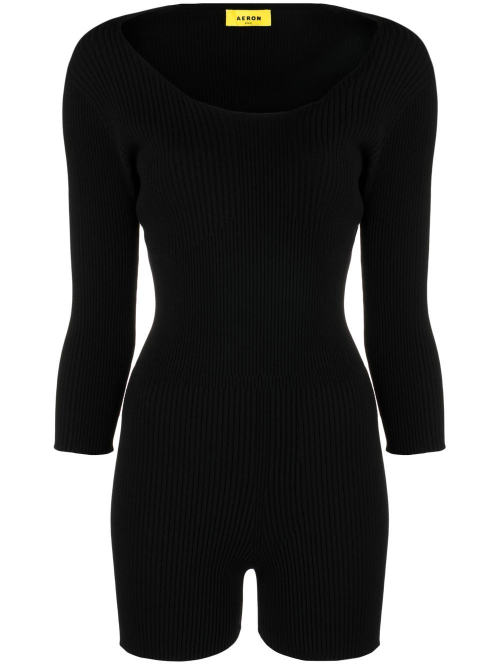 fine-ribbed scoop-neck playsuit Highlights - Black - Fsc viscose blend - Fine ribbed - Scoop neck - Three-quarter length sleeves - Stretch-design Made in Italy Composition FSC Viscose 70%, Polyester 30% SIZE & FIT Model measurements Height 5 ft 10 in(1.78 m) Bust/Chest 31.49 in(80 cm) Hips 35.43 in(90 cm) Waist 24.4 in(62 cm) FittingInformation This piece fits true to size. We recommend you get your regular size Cut for a close fit Made with a mid-weight stretch fabric Washing instructions Dry Clean Only