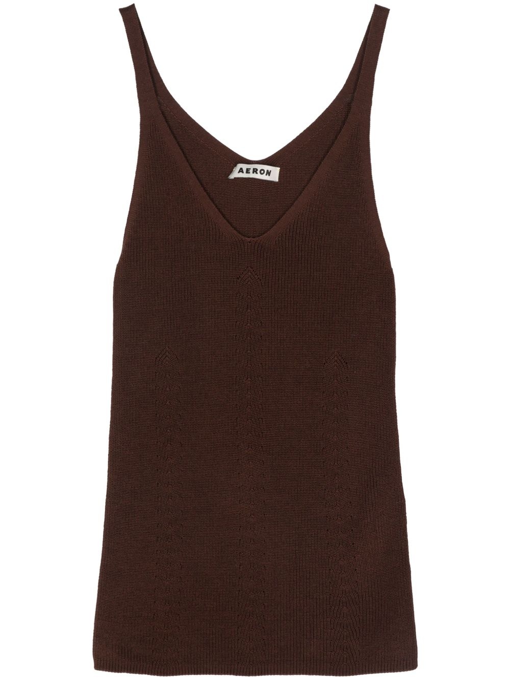 Freesia knitted top chocolate brown organic cotton knitted construction thin straps sleeveless V-neck straight hem Imported Composition Organic Cotton 100%