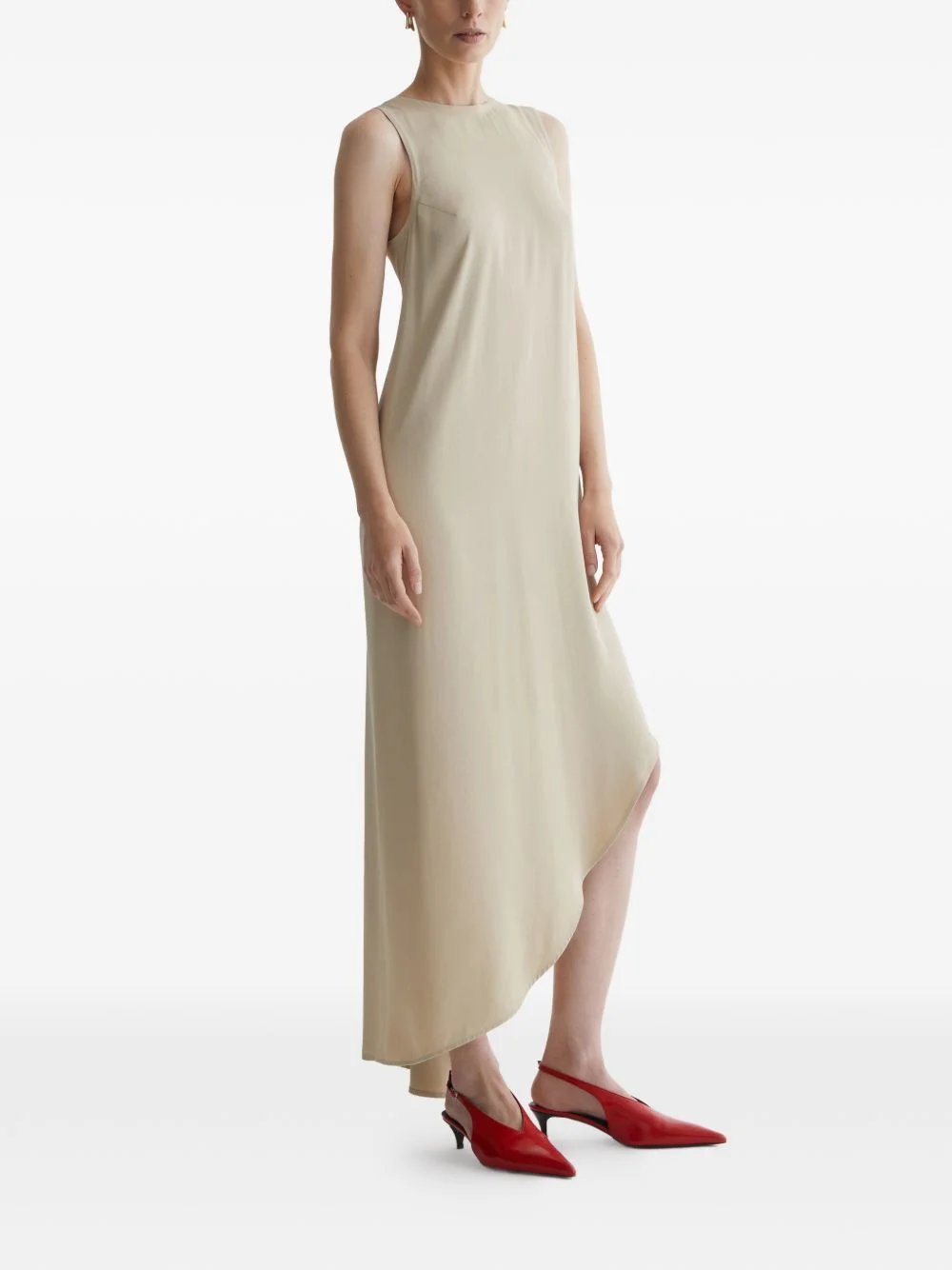 Glaze V-neck asymmetric dress Highlights - Beige - Asymmetric hem - V-neck - Sleeveless - Draped panel - Open back Imported Composition Acetate 66%, Viscose 34% Washing instructions Hand Wash