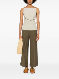 Jeera straight trousers Highlights - Forest green - Ecovero™ viscose blend - Belt loops - Two rounded pockets to the sides - Pressed crease - Ankle-length - Turn-up hem - Silver-tone button detail to the hem - Straight leg - Fabric-covered button - Front concealed zip fly and button fastening Imported Composition EcoVero Viscose (LENZING) 83%, Polyester 14%, Fabric 3% SIZE & FIT Model measurements Height 5 ft 10 in(1.77 m) Bust/Chest 33.07 in(84 cm) Hips 37 in(94 cm) Waist 24.8 in(63 cm) FittingInformation Designed with a wide-leg cut, these trousers allow for a close fit at the waist and offer a loose and roomy fit over the leg Made from a midweight non-stretch fabric, this piece offers minimal elasticity when worn This piece fits true to size – take your usual size Washing instructions Dry Clean Only