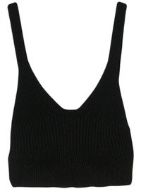 Joan cropped knitted bralette Highlights - Black - Fsc viscose blend - Ribbed knit - Thin straps - Sleeveless - V-neck - Cropped - Open back - Unlined - Straight hem - Pull-on style Imported Composition FSC Viscose 72%, Polyester 28%